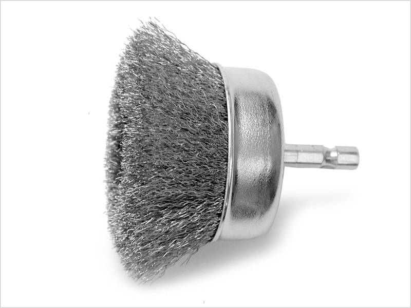 Shaft Mounted Cup Brushes are especially effective on aluminum, Cast iron, brass, copper and hardened steel. Good for corners and angles, and removal of contaminants such as weld spots, burr, rust and corrosion. The standard 6mm shaft attachment makes it an easy to use product with any hand held drill.